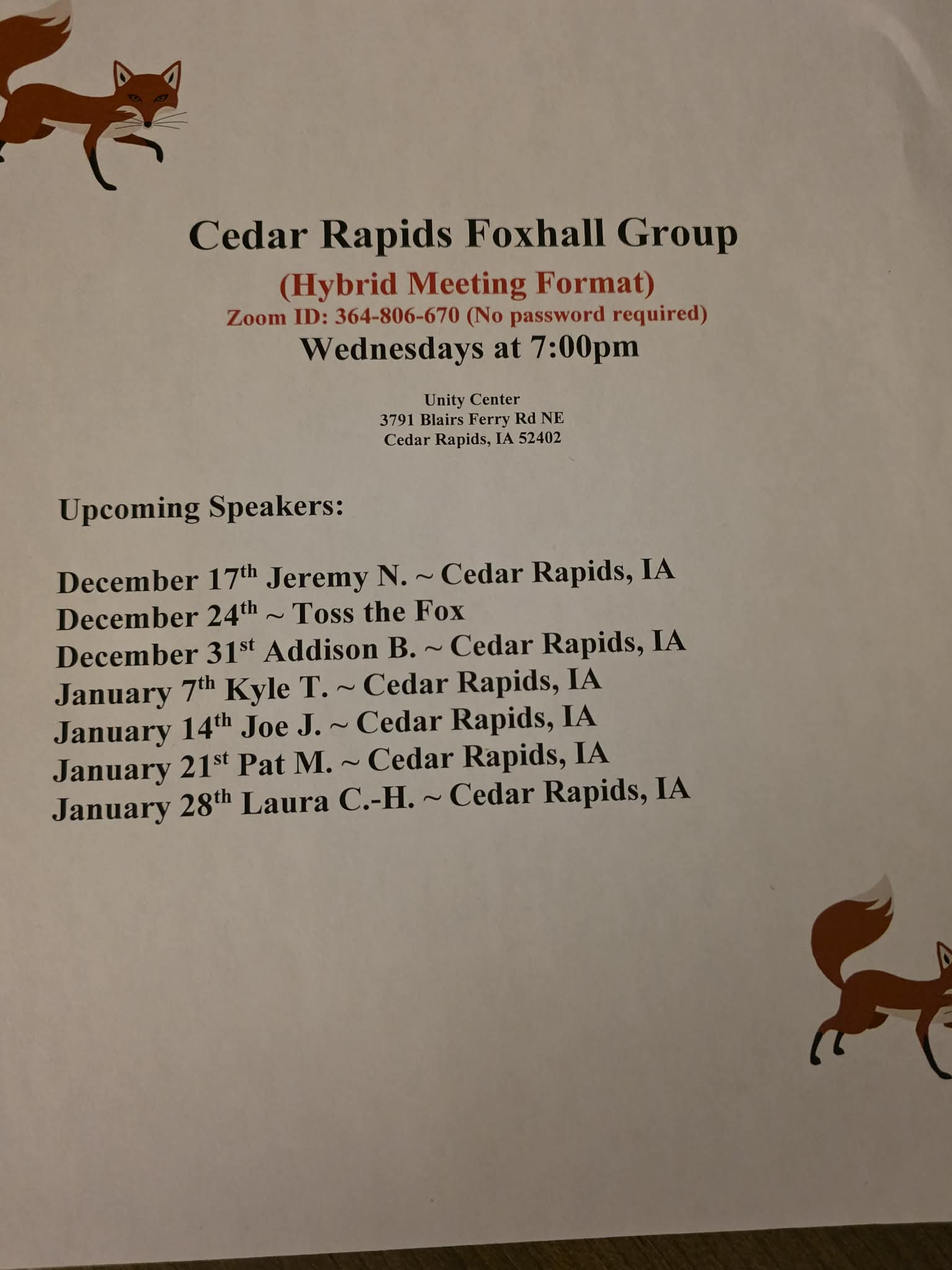 Unity Center -3791 Blairs Ferry Rd NE, Cedar Rapids, IA 52402 (10 minute speaker followed by a 30 minute speaker) December/January Flyer here – to Join via zoom – Click the link here –